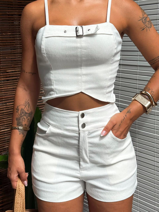 Conjunto de linho colete de gola